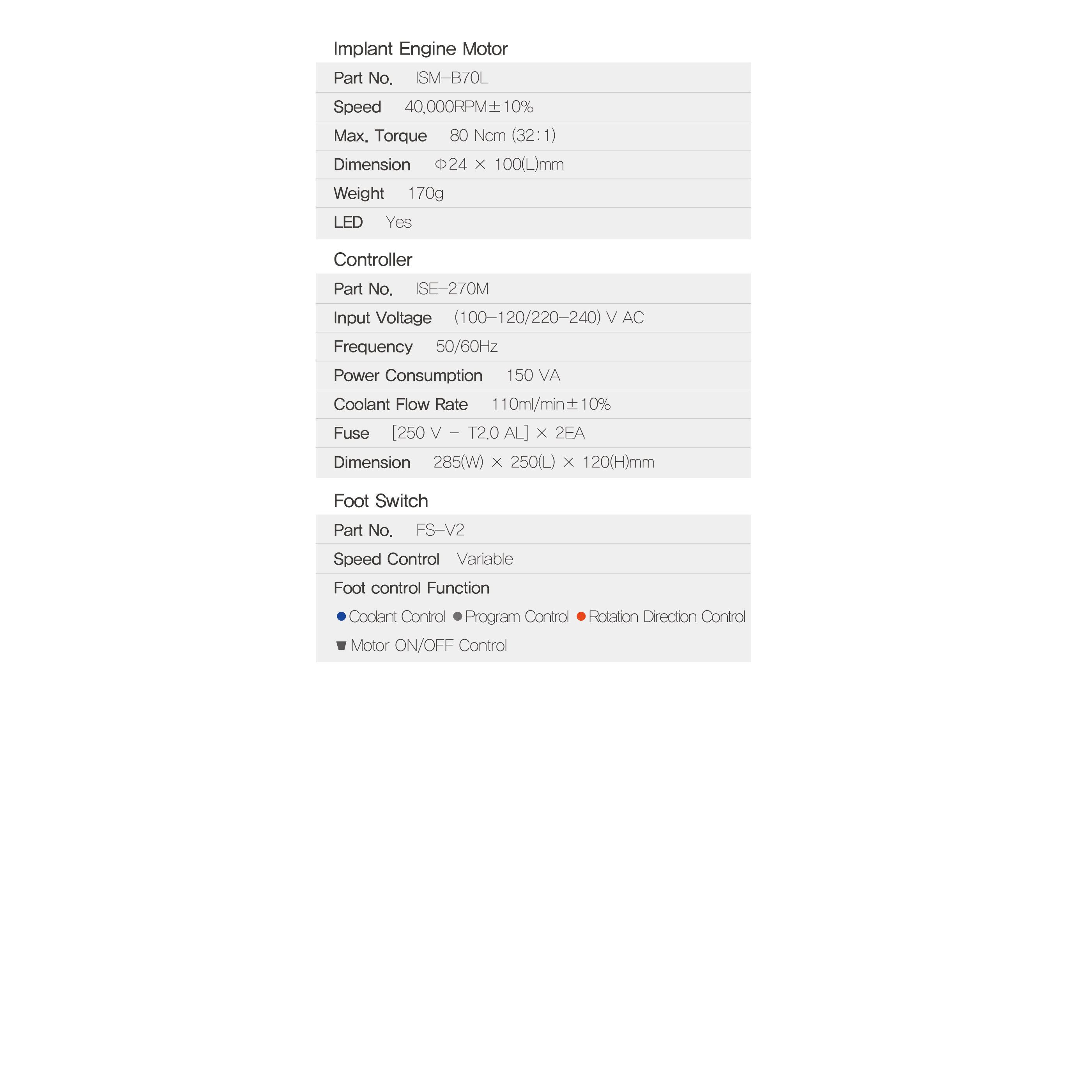 | Real-time torque and RPM display The compact control unit shows real time rpm and torque through digital panel. It helps users to perform a surgery more precisely. |